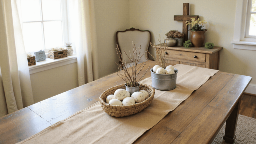 I’ll be honest with you. The first time I tried to decorate for Easter, my living room looked like the Easter Bunny had a meltdown in a craft store. Plastic pastel everything, glittery eggs that shed like a cat in summer, and nothing that felt remotely like me.
